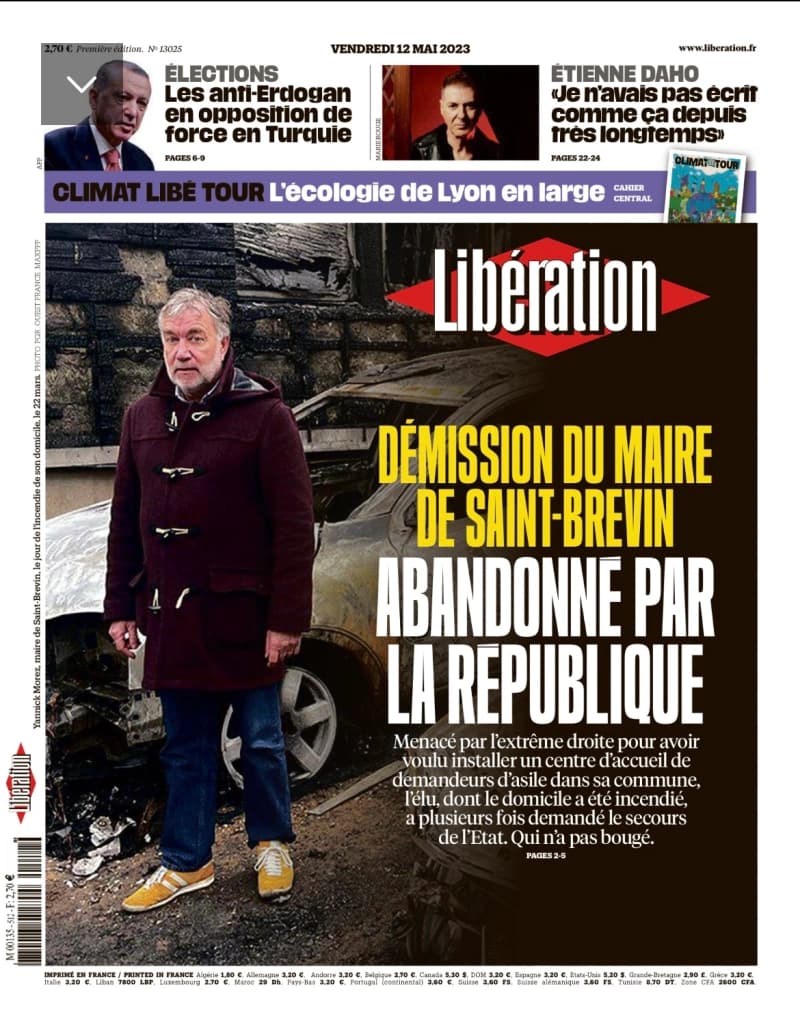« J’imagine que ça doit te rendre dingue », me glisse Hélène dans son sms du matin. Elle fait échos de la « une » de Libération avec le maire de Saint-Brevin. Derrière lui, sa voiture calcinée et visiblement le mur de son garage lui aussi noirci par la haine des néo-fascistes à l’encontre d’un élu de la République. Je ne connais pas Yannick Morez. Il ne s’attendait certainement pas à faire la couv de Libé un jour.